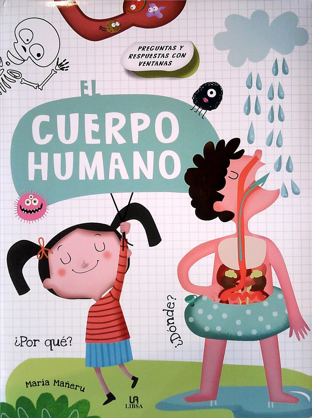 El cuerpo humano de María Mañeru. Los niños más curiosos encontrarán dentro de este libro respuestas a las preguntas más habituales que se hacen sobre el cuerpo humano, como…¿Dónde va el agua que bebo? ¿Por dónde pasa la comida? ¿Por qué la sangre es roja? ¿Qué son las huellas dactilares? Este libro lleva muchas ventanas para aprender y divertirse al mismo tiempo.