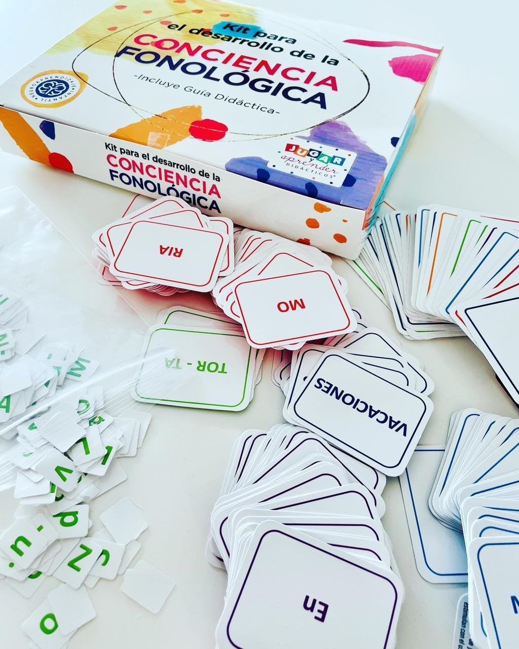 El material está diseñado para la estimulación inicial de habilidades vinculadas a la lectura, escritura, la comprensión del lenguaje y el tratamiento de dificultades específicas de aprendizaje. Puede ser utilizado en el ámbito educativo de nivel inicial- primer ciclo de primaria, como material de apoyo e incluso en el ámbito clínico. Está formado por tarjetas con ilustraciones, oraciones, palabras, sílabas, rimas, oraciones, letras móviles y preguntas. Sus componentes forman un material integral para abordar la lectura y escritura estimulando habilidades vinculadas a la conciencia fonológica y la comprensión del lenguaje. Se recomienda su uso para: - Estimular el lenguaje en la primera infancia. - Desarrollar juegos fonológicos y estimulación cognitiva de habilidades vinculadas a la lectura y escritura inicial. Complementar la enseñanza- aprendizaje de la laecto escritura en nivel primario. - El tratamiento de dificultades en el lenguaje oral (fonología, sintáctica, fluencia), Dificultades especificas de aprendizaje (Dislexia, retraso lector), condiciones genéticas o del desarrollo (TEA, Diversidad funcional).