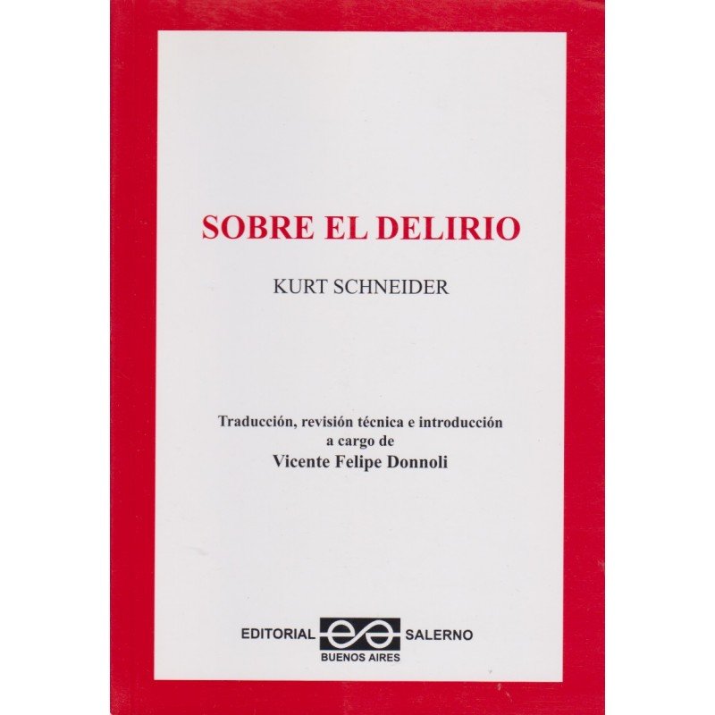 El contenido de este libro recuerda el pensamiento psicopatológico de Kurt Schneider sobre el tema del deliro. Siguiendo la tradición de Karl Jaspers, de estudia r el delirio desde la experiencia interna del paciente, prioriza la forma por sobre su contenido o tema que es descriptible por el observador desde fuera de esa ex periencia personal. De acuerdo con este método fenomenologíco, Kurt Schneider profundiza sobre las vivencias delirantes primarias, en especial la percepción delirante diferenciándola de la ocurrencia delirante de naturaleza no específicamente primaria. A partir de esta diferencia y de las críticas que hace el método comprensivo, surge el interesante planteo acerca de la relación entre el delirio y psicosis. Su lectura nos refresca la importancia de una consideración psicopatológica durante nuestra práctica cotidiana de la psiquiatría
